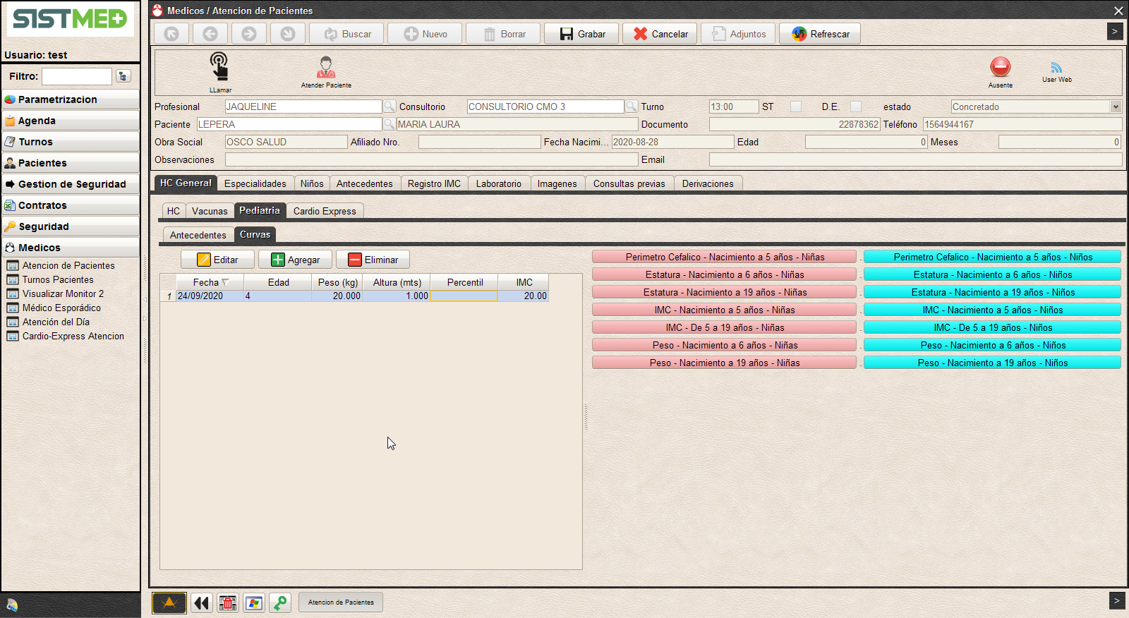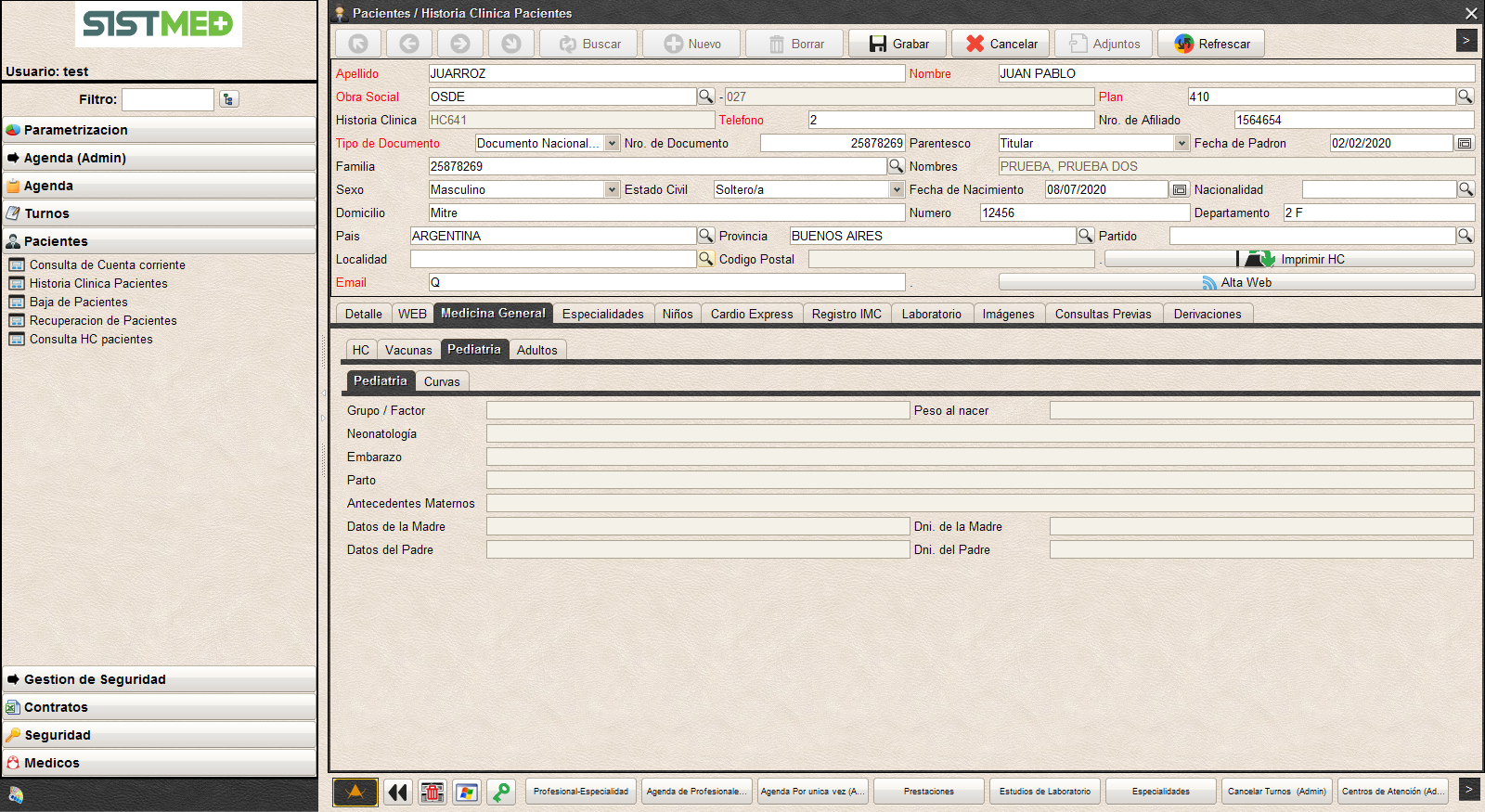 Desde este módulo podrán consultar los datos de los pacientes, su historia clínica y una cuenta corriente con los movimientos generados por el mismo.