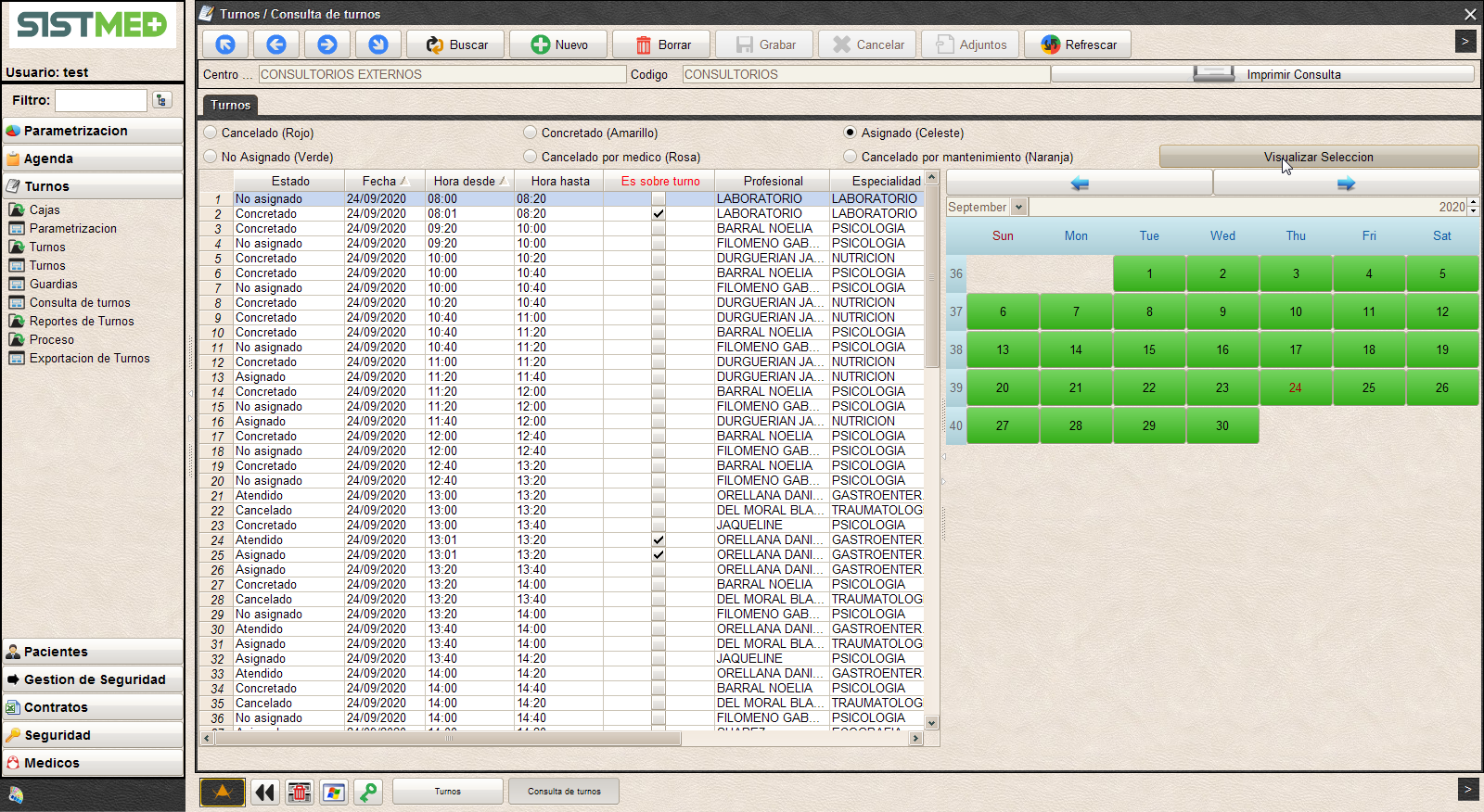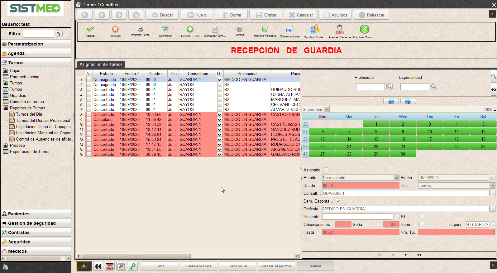 En este módulo el usuario podrá visualizar los turnos disponibles, realizar la asignación de turnos por profesional o por especialidad. Permite hacer un seguimiento diario de los turnos y los estados de los mismos. Permite gestionar todos los datos del paciente, registrar la utilización de bonos o señas y si el turno fue generado por demanda espontanea. Permite definir los distintos medios de pagos y registrar los pagos de las consultas y coseguros.
