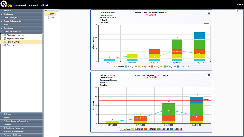 Permite la definición de los objetivos anuales establecidos por la organización en función de los procesos existentes en la misma. Permite consultar los indicadores, consultar el histórico de los mismos y generar reportes para lo toma de decisiones.